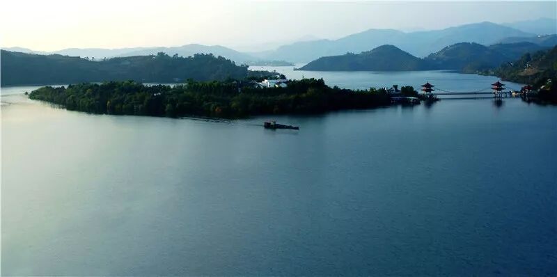 水库隐藏在群山之中,就像一条游龙,总长达数公里,坐在游艇上,就好像处于弯曲的江河之中,明明已经到达水的尽头,一转弯,还在水中飘荡,真应了古诗所说“山穷水尽疑无路,柳暗花明又一村”。