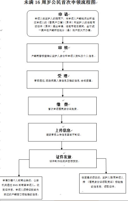 ②领取证件时,监护人陪同申领人到受理点领证的,应持《居民身份证领取凭证》和监护关系证明材料并核验申领人指纹信息后领取;办理邮寄业务的,在收到证件后,须持证到省内就近的户籍窗口核验申领人指纹信息。
